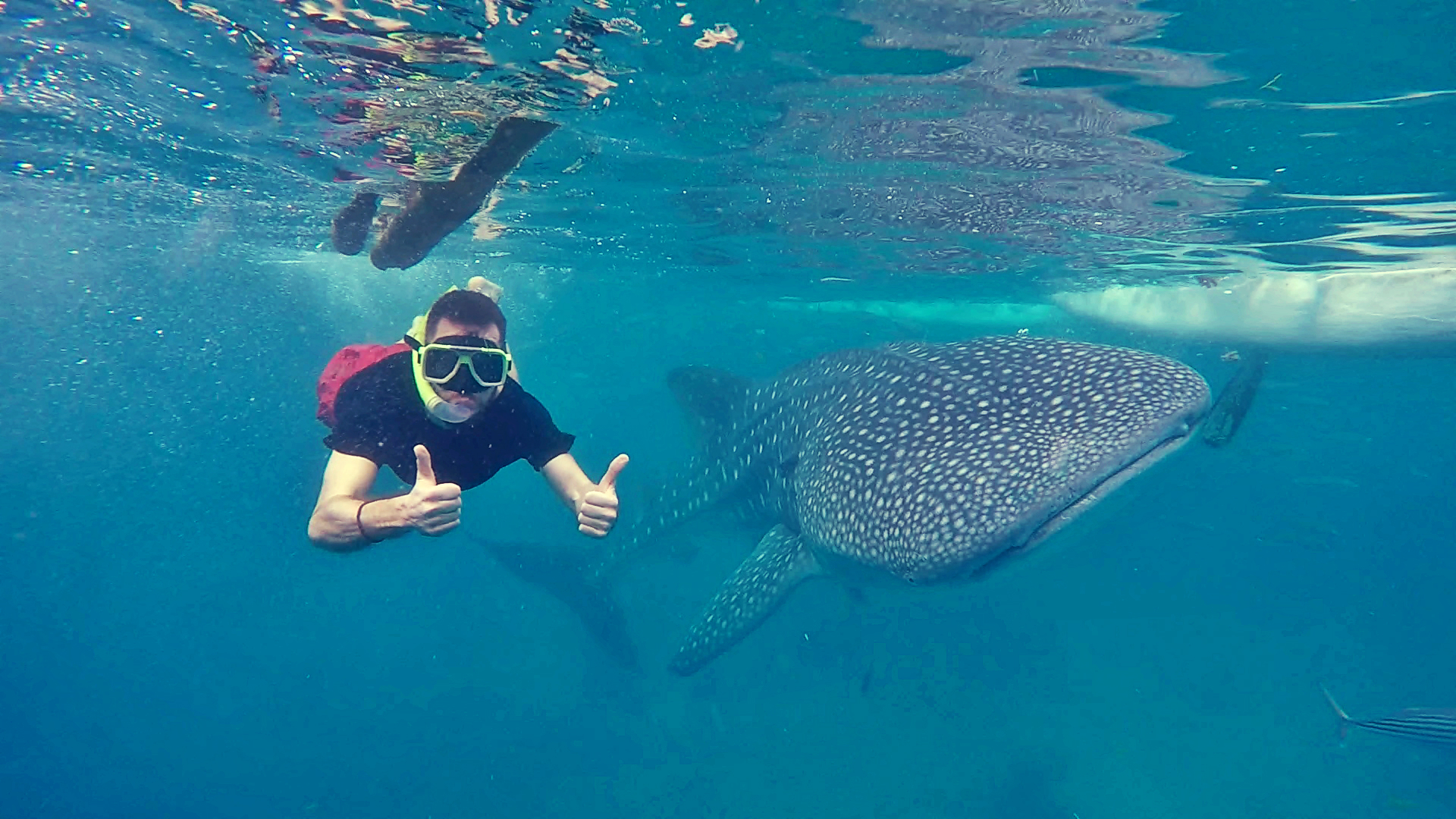 Iš Cebu, senoviniu autobusu vykome į už 4 valandų kelio esantį kaimelį, Oslob. Vietovė garsėja tuo, jog orgnaizuoja nardymus su bangininiais rykliais. Svajojome išbandyti šią pramogą! Pats miestelis labai mažas, tik su viena gatve, bet labai jaukus. Daug vietų kur galima skaniai pavalgyti vietinio maisto. Miegojome jaukiame poilsio komplekse su pasakišku vaizdu į vandenyną (beveik visi čia tokie). Vakare užsisakėme masažų terapiją, raumenims atpalaiduoti, o anksti ryte kėlemes į susitikimą su rykliais. Galiu drąsiai teigti, jog nardymai su šiais unikaliais gyvūnais man paliko didžiausią įspūdį ir buvo pati įspūdingiausia patirtis, kokią iki šiol esu turėjęs… Kai pamatai keturių metrų ryklį plaukiantį tiesiai į tave, pasijauti šiek tiek nejaukiai, tačiau reginys vertas dėmesio ir rizikos, o patirtis neįkainojama.
